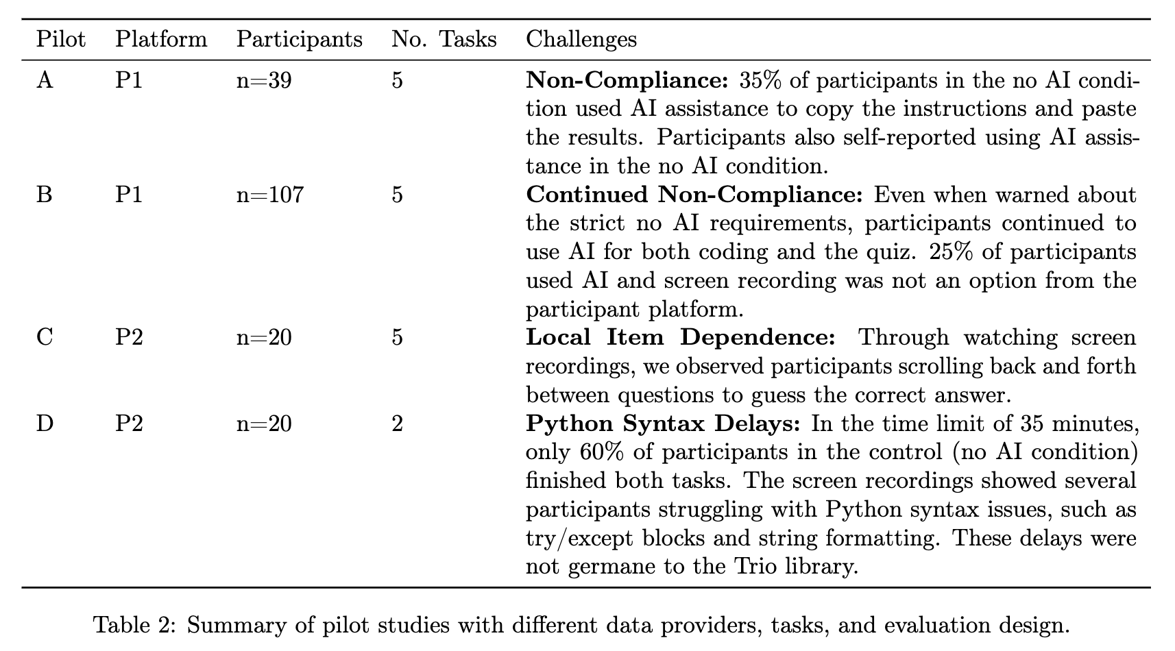 任务后测验(25分钟):所有参与者在没有AI辅助的情况下完成一个关于Trio库的测验,旨在评估他们对Trio库的真实掌握程度。
